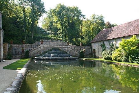 Many of these are scattered across the gardens in front of the main abbey buildings, also enhanced by several carefully pruned trees, and meticulous gardens. The gardens continue behind the main Fontenay buildings, with a very large formal garden running back into the woods that surround the abbey.