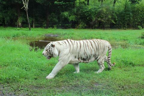 There are a large number of big cats in the zoo with tigers, leopards, jaguars and panthers. There is also a very ghostly white tiger and a group of white lions.