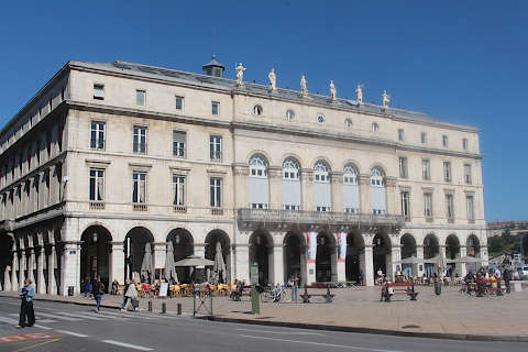 Near the confluence of the rivers you can see the Town Hall, a substantial building that was built in the classical style in 1842 and has statues along the facade, and also contains the town theatre.