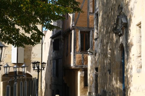 Wandering around the streets of Bergerac old town you will see lots of attractive, medieval, half-timbered buildings, there are some particularly good examples on La Rue Saint Clar many of which have the upper storey overhanging slightly the lower part of the building.