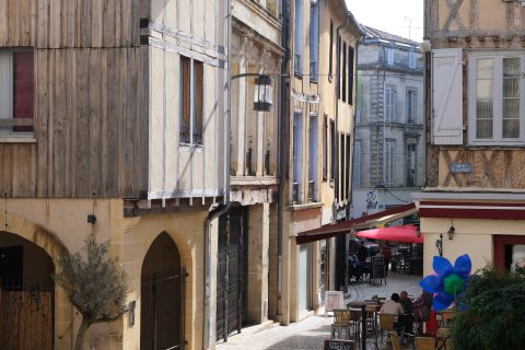 You will quickly reach the main square, Place Pelissiere that slopes gently upwards. At the top of this square is the lovely Saint Jacques Church which formed part of the Saint Jacques de Compostella pilgrimage. Much of it was destroyed in the Wars of Religion but its attractive bell-tower and balcony are original.