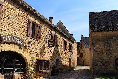 Back in the village centre you can follow the main street that climbs the hill - this steep street up the hill is called the basket-makers path (Carnival del Panieraires). Exploring Beynac is easy as you simply follow this narrow lane as it winds its way up through the lovely traditional Dordogne honey-coloured buildings, taking occasional detours into narrow alleys and side-streets.