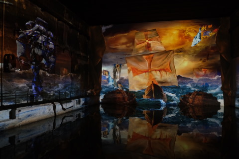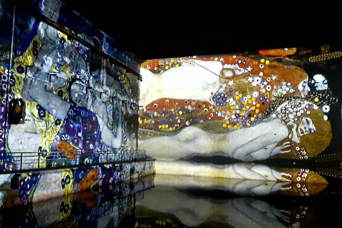 The concrete walls of the docks are used as the backdrop for the superb art installations created by Culturespaces. The images are constantly in movement and different walls and reflections show different parts of the images at all times.
