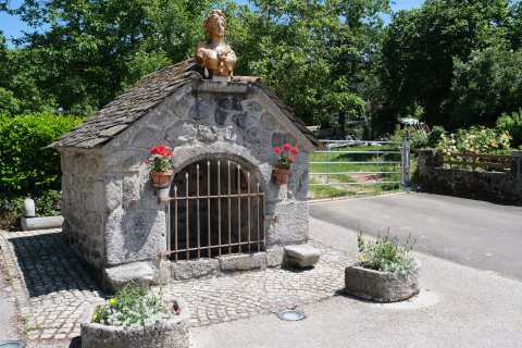 There is a stone fountain in the village and as well as the church in the centre of Cassaniouze village, you can also see a colombage house and a small church with a red stone belltower in the Saint-Projet area of the village.