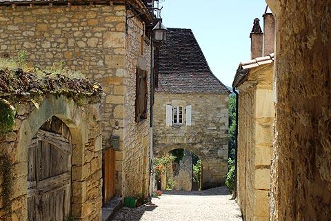 The road through the village is steep with cobbled paths leading you through arches and down side-streets. Round every corner are more lovely stone houses with steep, perigordine roofs and wooden shutters.