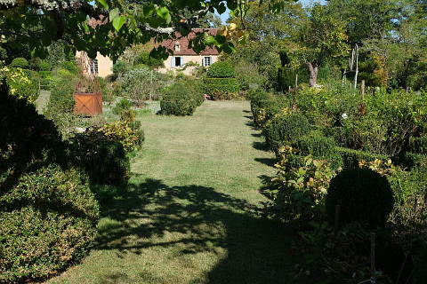 Leading round from here to the side of the house and the main garden area you will first come to a pretty pond which is home to ornamental ducks. This section of garden has deep shrub borders and lots of clipped trees and shrubs and areas of herbaceous planting including lots of peonies, roses, daylilies and aquilegias leading it to be called the 'English garden'.