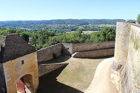 The chateau de Fenelon has two series of defensive walls, each with an entrance gate and space between them. These were designed so that if assailants managed to get through the first gate they had to turn left to reach the second gate, which was also slightly higher than the first.
