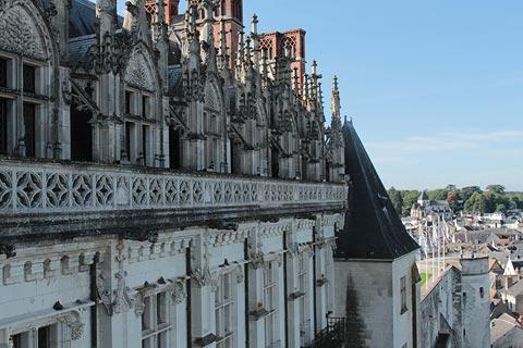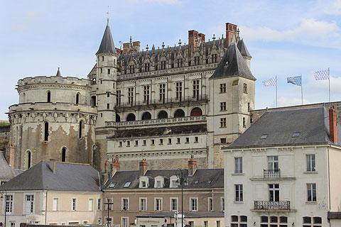 The Chateau d'Amboise sits on a ledge above the town of Amboise in the Loire Valley, in a position with lovely views over the town, the Loire river and the countryside: the castle was built here for the strategic view it provided over the Loire River at an important crossing point - at that time it was a ford, although there is now a bridge.