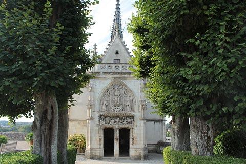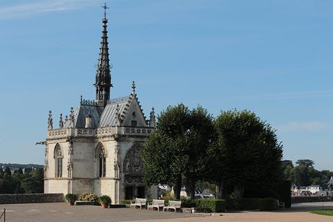 One of the first monuments you will see inside the grounds of the castle is the Saint-Hubert chapel, built in the flamboyant gothic style at the end of the 15th century. This is among the highlights of a visit, with its impressive facade, stone carvings, vaulted ceiling and stained glass windows. Inside the chapel and to the left you can see the burial place of Chateau d'Amboise. Some of the best views across the roofs of Amboise are from the belvederes behind and near the chapel.