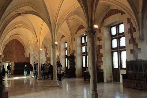 As you cross the courtyard towards the castle you pass the place where Charles VIII died in 1498, at 28 years old, after hitting his head on a door lintel. The wing to the left is in gothic style and the wing to the right is in the renaissance style: Amboise was the first castle in the Loire Valley to use this style.: look in particular at the stonework around the windows of the two wings.