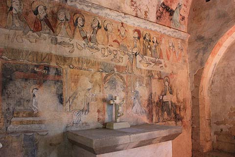 You will also see several of the ancient rooms - dungeons, kitchens, living quarters etc - in the Chateau de Beynac, as well as the various open courtyards. One of the rooms contains some interesting medieval frescoes and several have been furnished in a style appropriate to the period. Overall the renovations and furnishings in the castle have been carried out to an exceptionally high standard.