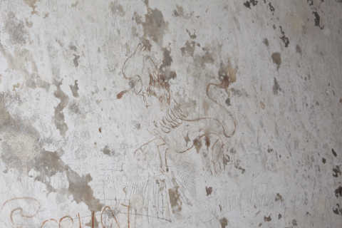 From here you reach the main part of the castle, with the most interesting aspects including the round tower, the square tower, the great tunnel underneath the castle that was used for storage, and the spiral vault in the north tower. In one of the rooms you see walls still scratched with the graffiti from the 15th century.
