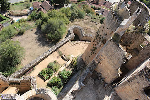 There is a small recreation of a medieval garden, and a large terrace with lovely views across the village and countryside. In the time of Marguerite of Fumel the terrace was a beautiful French style garden but now it is just grass.