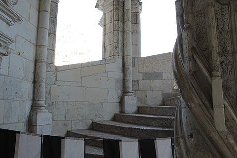 The renaissance wing includes the grand spiral staircase, the most famous feature at Blois chateau and the full height of the castle: the staircase includes statues and royal motifs such as the salamander as well as other impressive detail in the stonework. The other important building in the courtyard is the Saint-Calais chapel built in 1508.