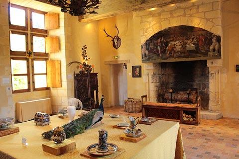 The interior of Chateau du Rivau is also a much more comfortable and well equipped interior than we would find in a medieval fortress, with large comfortably furnished salons and monumental fireplaces.