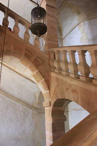 This monumental staircase is open rather than surrounded by walls as was usually the case at this time. It is a copy of the Hotel de Luxembourg and is one of the oldest of its kind, though the style became common for the next two centuries in noble buildings.