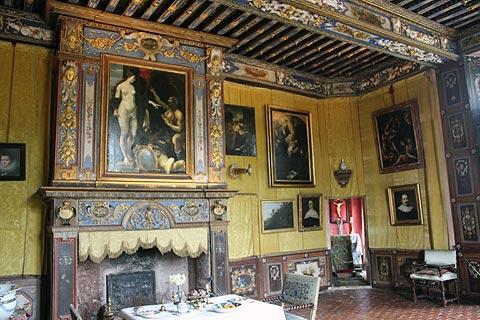 Many of the salons and bedroom are painted and furnished in the style of the period, with Louis XIII furnishings and wallhangings, grand wall murals and great high ceilings.