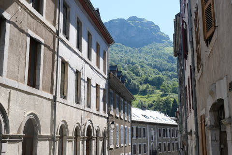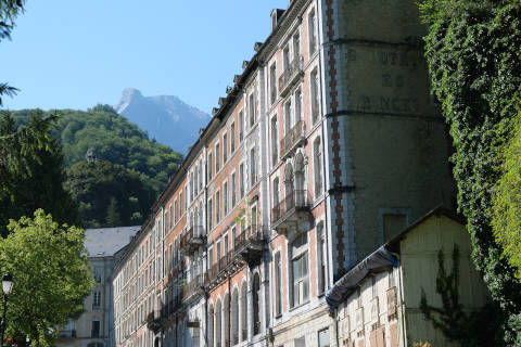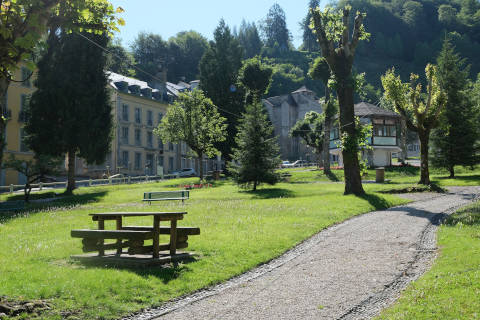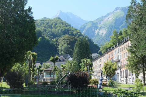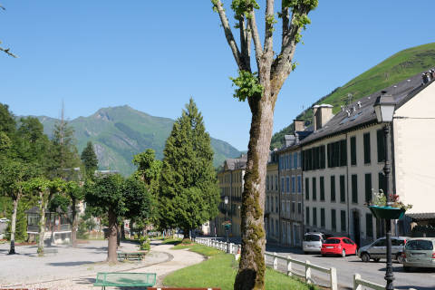The town centre in Eaux-Bonnes is a large open square with tall houses and hotels along both sides, typically built in the 1860s, and a garden area in the centre. Overall this creates a charming town centre, although some of the buildings are in a poor state and look better from a distance!