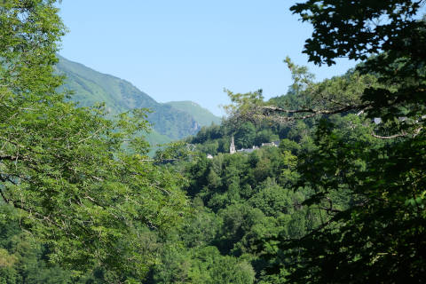 If you follow the road to Aas, although there are trees along most of the route there are several places (for example at Surcou about one kilometre from the town centre) where you have a nice global view across the rooftops of Eaux-Bonnes.