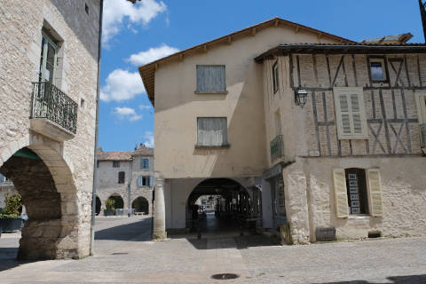 Many of the houses in the central square, called the Place Gambetta, still have the medieval arcades at ground floor level that once provided shelter to the market traders. These arcades are very well preserved here, among the best of the bastides in the region.