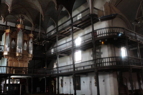 Along both sides of the nave there are three galleries of balconies (called tribunes). This is the feature that makes the church Saint-Vincent interesting to visitors, because although these are quite common in the Pays Basque region of France, they are very uncommon elsewhere, and add a lot of character to the interior.