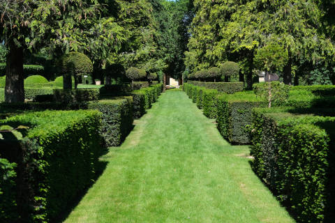 The main alley is called the Allée des Charmes and has yew trees and hornbeam trees. The alley is 100 metres long and the hornbeams need pruning five times a year, always to very demanding standards and using hand shears and plumblines, so a great deal of work goes into maintaining this row!