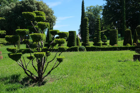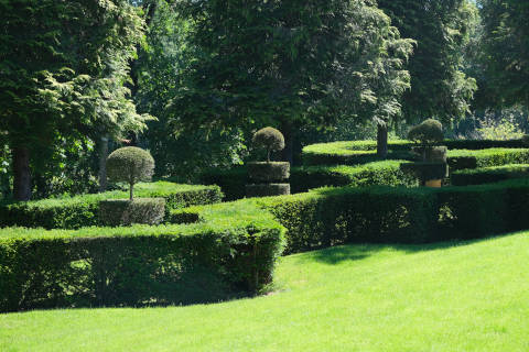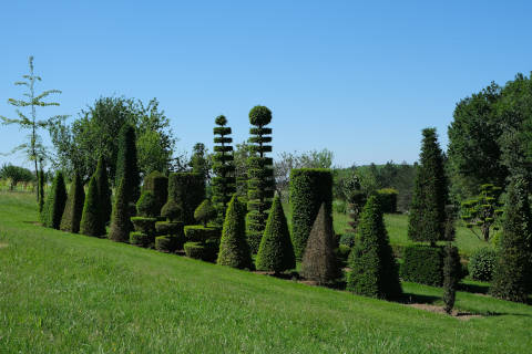 The Jardins d'Eyrignac cover an area of about 10 hectares (24 acres), which includes a mix of formal gardens with carefully trimmed and shaped trees and hedges - this is the main characteristic for which the gardens are known - and small informal areas with flowers, prairie grass, and vegetables. You will also see numerous sculptures in modern art as you explore.