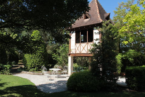From here an English garden, an attractive pigeonnier on stilts, a labyrinth and a rose arch can all be discovered. Each area is planted with mature shrubs and trees and there are various seats along the way allowing you to sit and admire the views.