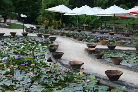 Near to the entrance building there is a greenhouse which contains the giant water lily with giant leaves and huge flowers of 50cm diameter which change colour. These are known as the Victoria and only appear in the night.
