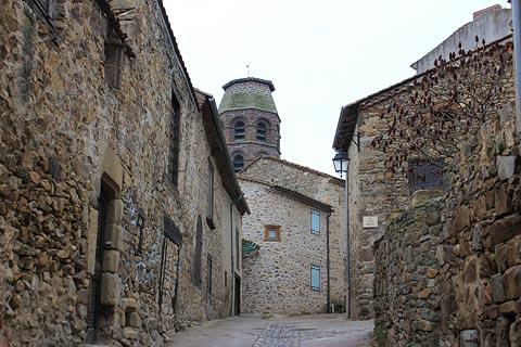 The cobbled streets of Auzon wind up the hill from the river, passing an imposing church and medieval houses