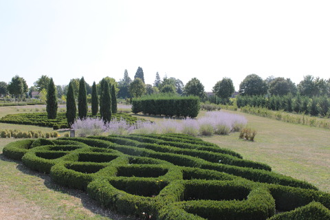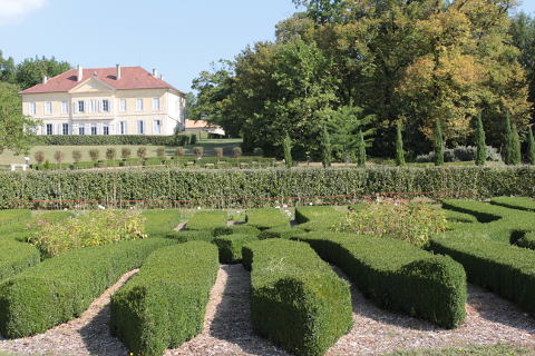 The Chateau du Bouquet was built in 1840 and its courtyard is now the entrance to the gardens. Once a wine chateau the land surrounding the gardens has now been transformed into a large garden with a 2 kilometer walk leading round its large array of geometric topiary gardens.