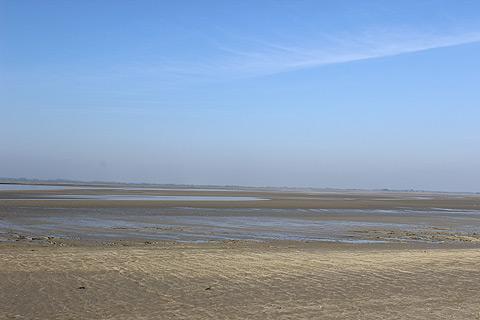 Because Le-Crotoy is on the Bay of the Somme, at low tide there is an enormous expanse of sand in front of the town, really almost as far as the eye can see. Indeed the sea is far away at low tide and the bay is like a huge sand flat covered with shallow pools of water.