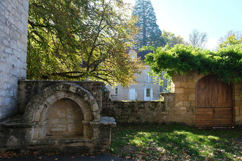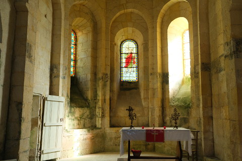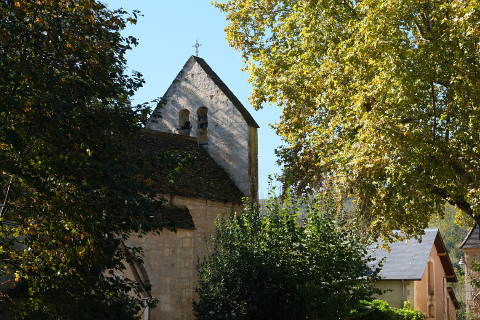 The centre of Le Moustier is made up of some elegant houses and the church which dates back to the 12th century. The church is built in Romanesque style and unusually has not been built with an east-west orientation but is east-southeast to west-northwest.