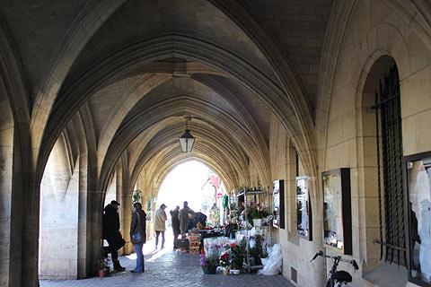 Part of the Place Abel-Surchamp is surrounded by the traditional arcades, and the square is especially lively on market days.