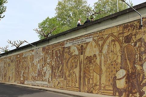 Take a look at the mosaic which has been added to the ramparts below the church. The mosaic illustrates six key events in Marmande's history including the siege of the town by Henri de Navarre in the 16th century.