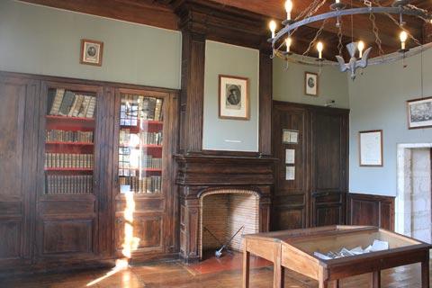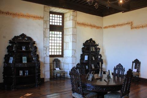 One large hall is decorated with furniture collected by Mounet Sully, a famous actor from Bergerac; another room features his collection of Limoges pottery; and another room features caricature drawings by SEM, a well known caricaturist from Perigueux.