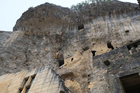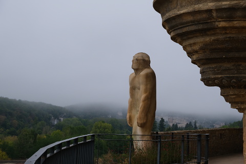 From here you have excellent views over the Vézère valley and Les Eyzies below and you can walk along to the large statue of primitive man sculpted in 1931 by Paul Dardé.