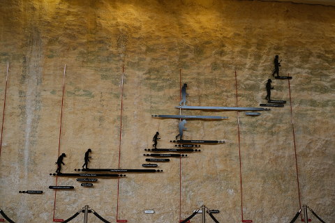 The entrance is on the ground floor as well a shop and a wall display of the timeline for the emergence of modern man.