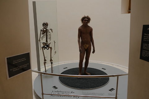 On the lower gallery are exhibits relating to the cultures and environments of prehistoric man. Amongst the exhibits are a skeleton of a Neanderthal baby found at a nearby prehistoric shelter at Le-Moustier.