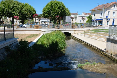 Some of the prettiest parts of the town lie along the edge of the small Riviere La Crempse. On the edge of the Place de la Republique is a small weir and a little bridge across to a lovely stone building which is home to the town's music school.