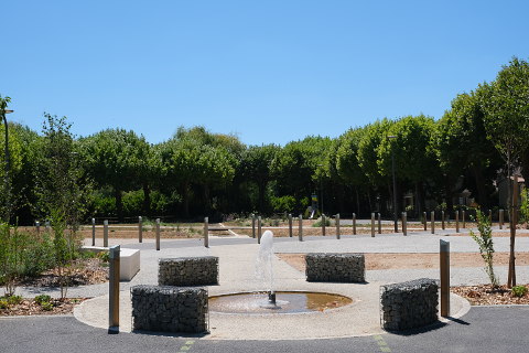 Behind this area Mussidan has recently created an attractive contemporary garden area with a fountain and water rills and contemporary planting.
