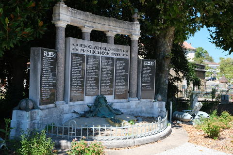 Near to here is the towns war memorial which commemorates especially the events of the 11 June 1944 when in retaliation for work by resistance fighters to sabotage the railway the Germans gathered 350 residents of Mussidan and shot 52 of them including the mayor and his secretary.
