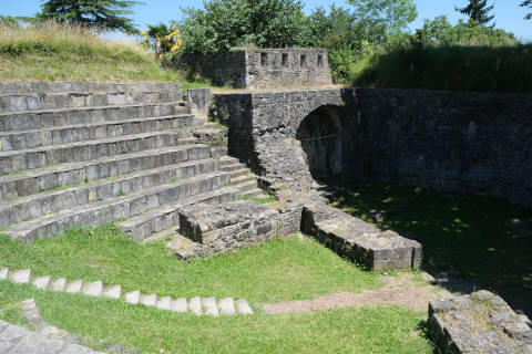 Walk along the terrace to the bastion, from where you have a good view of the Saint-Antoine gate as well as a lovely view across the river, the Gave d'Oloron, and the bridge. The bastions that you can see in various places along the walls were built to allow the other parts of the walls to be watched and protected and were quite original at that time.