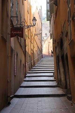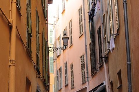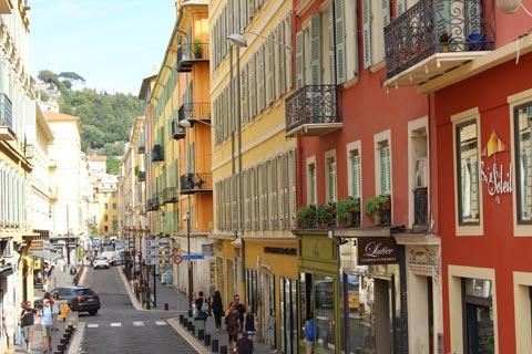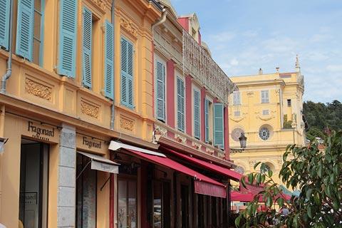 The old town in Nice is behind the Cours Saleya, and is an extensive area of tall old buildings, many painted in faded pastel colours, and open squares that also contains most of the most important historical monuments in Nice and a very large number of shops and cafes.