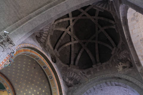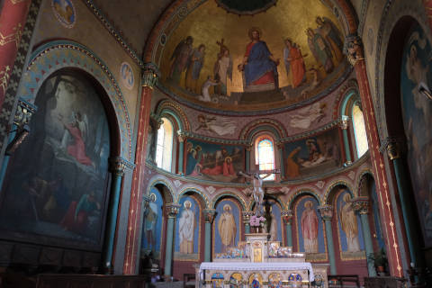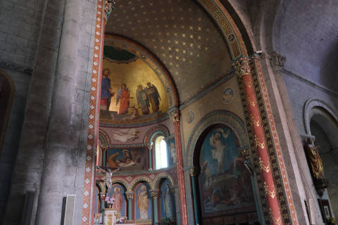 The whole altar area is impressive, with the wall and the domed ceiling painted with religious characters, in a style we usually associate more with Italy than France, although this is a 19th century addition in this church. Stories represented in the paintings include the Resurrection, the Passion of Christ and the Last Judgement.