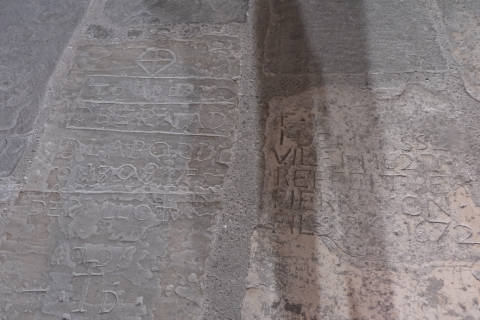 After admiring the area around the altar look down at your feet: a large part of the floor in the church is made from gravestones from the 17th and 18th century.