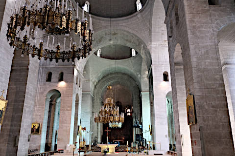 The main cathedral and the domes are behind this entrance and were also added in the 12th century, and incorporate byzantine elments of style as well as romanesque. It is thought that the altar of the original church stood under the central dome.