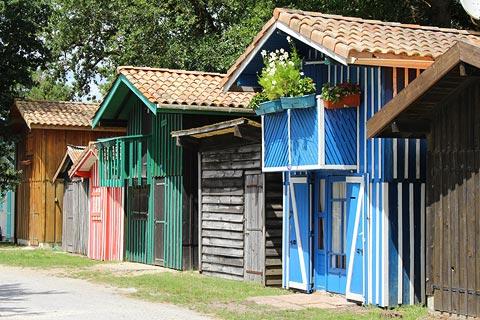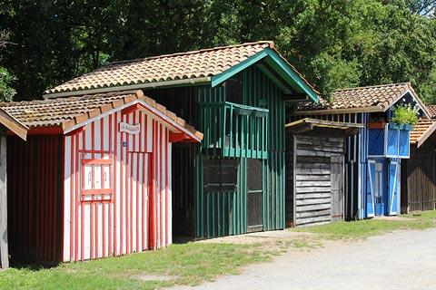 France This Way review: the charm of a visit to the Port de Biganos comes from the wooden cabins around the port, of various sizes and with many painted in bright colourful stripes: it is very picturesque and quite unusual.