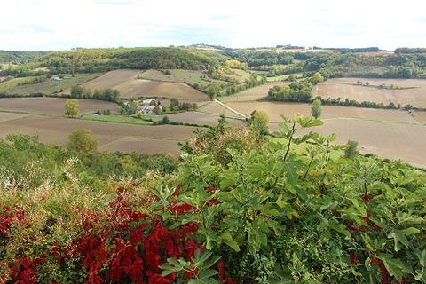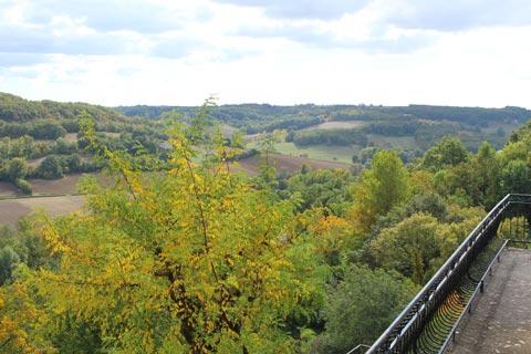 Behind the mairie there is a viewpoint across the valley and fields below. The town have built an attractive viewing platform including a large metal rectangle that frames the view - well done to whoever came up with the idea, it works very well!