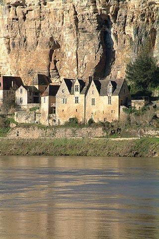 La Roque-Gageac is in a magnificent location. Although only a small village, little more than a row of riverside houses squeezed between the Dordogne river to the front and sheltered below the overhanging cliffs behind, it is very picturesque.